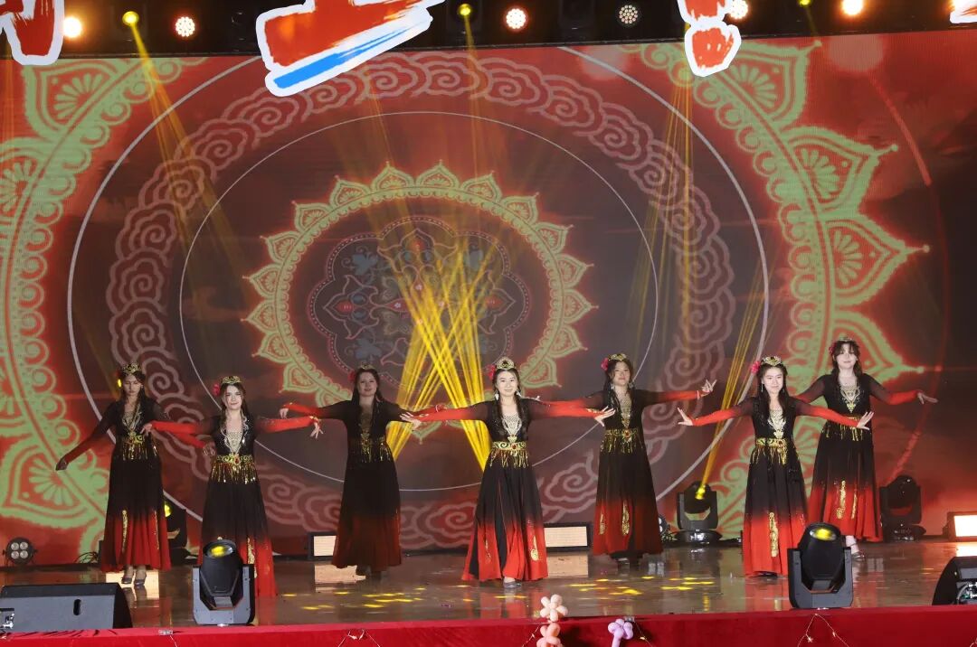 铃鼓欢歌,舞姿欢快,再现壁画神韵。一抹西域的神秘色彩,一段丝路的别样风光,舞者的脚步伴着风情,带领观众领略大漠深处的律动,独属新疆的华美深深吸引着现场每一位观众。