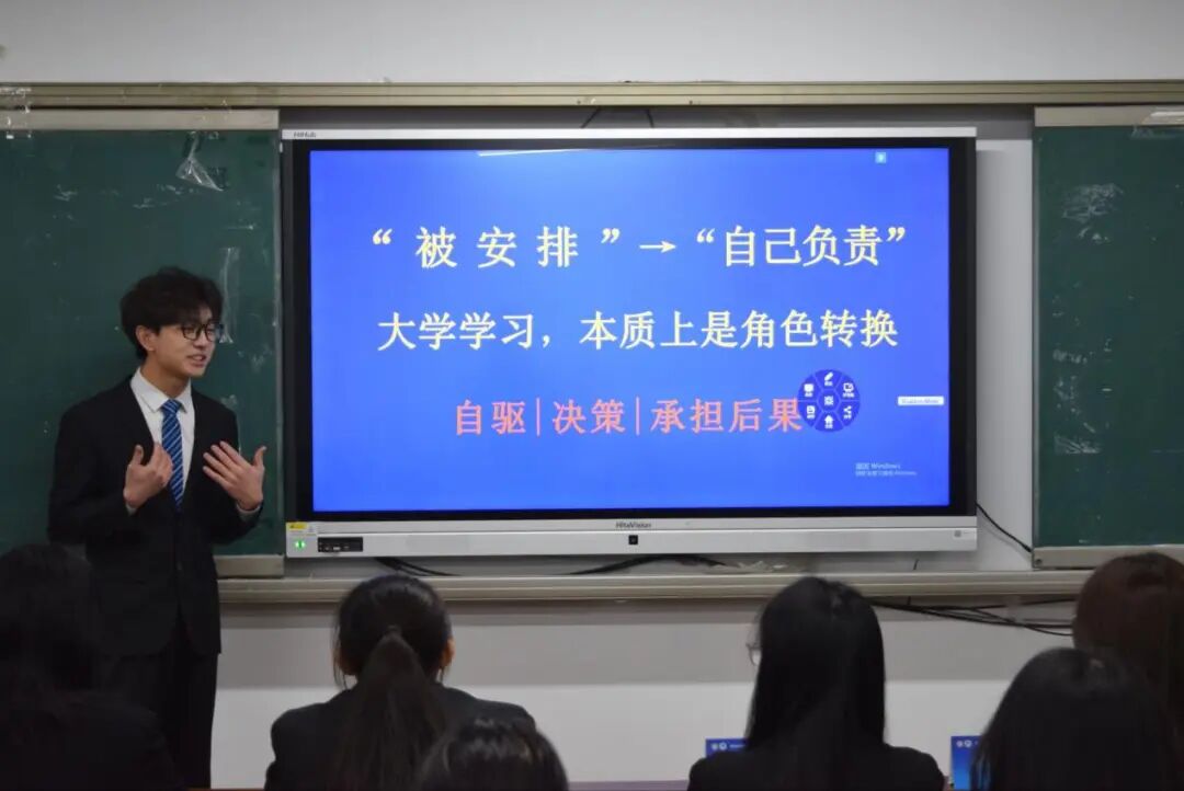 欧阳文昊以“大学学习的思考”作为切入点,分享了自己的经历经验。他将高中的学习和大学的学习进行了对比,强调大学是从“被安排”到“自我负责”的转变。他提出了大学学习的四个系统:第一、方向系统:明确自己的前进方向并细化阶段任务,将计划分解为周计划,制定每日目标,养成学习的好习惯;第二、信息系统:对收集到的信息进行筛选,不必为负面消息消耗,踏实做好当下;第三、执行系统:行动比追求完美更重要,要迈出第一步而不是在任务开始前过度的焦虑;第四、反馈系统:关注行动的意义,思考这个作业或者这份工作带来的价值,不做无用功。他还提到应当感恩每一位为我们提供过帮助的人,珍惜在学校的机遇,踏实做好每一件事。